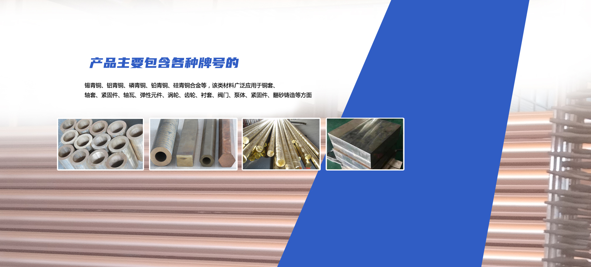 公司擁有多條連鑄熔銅生產(chǎn)線,并配備全分析直讀光譜儀、專(zhuān)業(yè)從事銅合金材料的研發(fā)、加工、銷(xiāo)售,產(chǎn)品主要包含各種牌號(hào)的錫青銅、鋁青銅、磷青銅、鉛青銅、硅青銅合金等,該類(lèi)材料廣泛應(yīng)用于銅套、軸套、緊固件、軸瓦、彈性元件、渦輪、齒輪、襯套、閥門(mén)、泵體、緊固件、翻砂鑄造等方面。